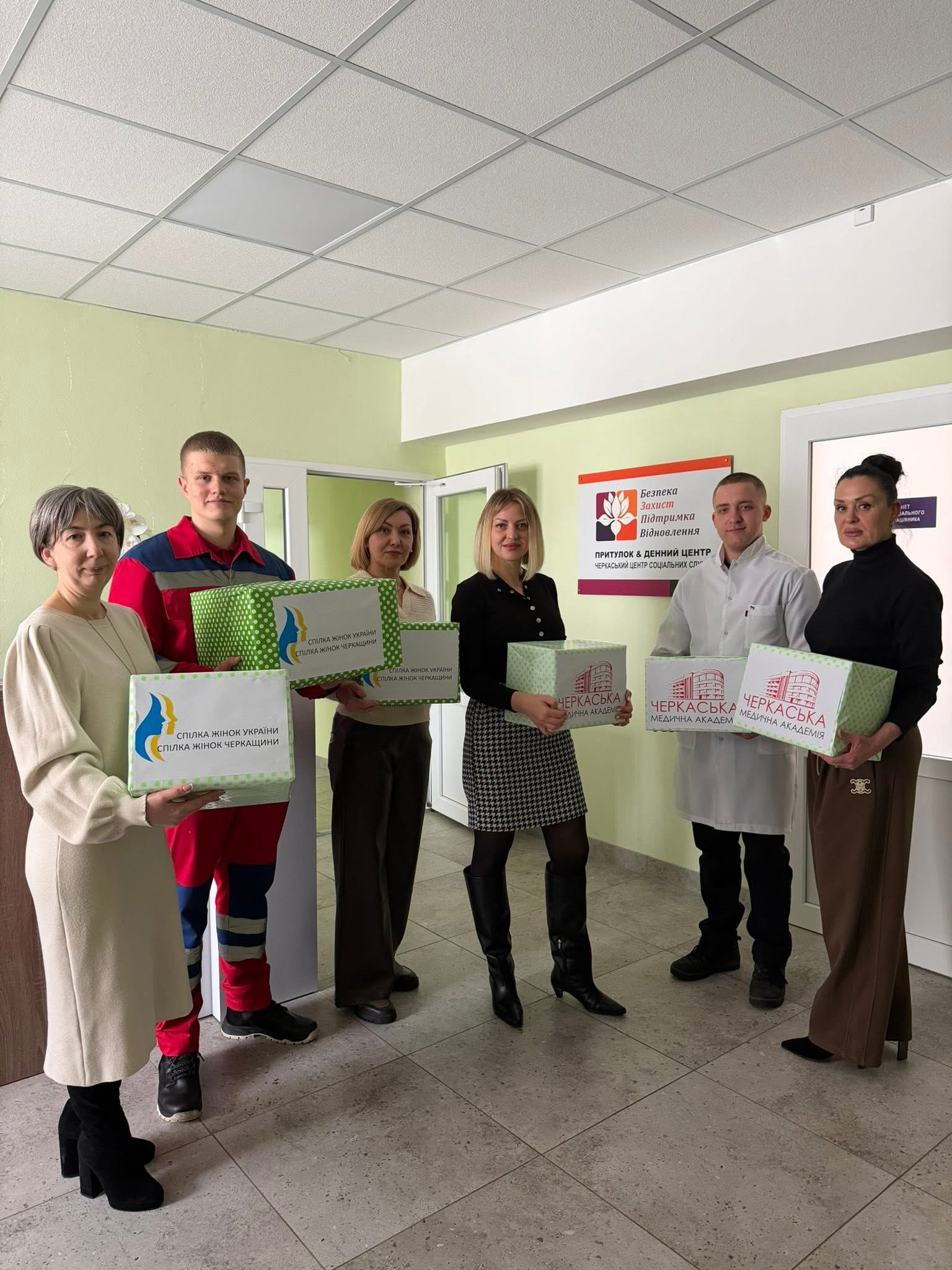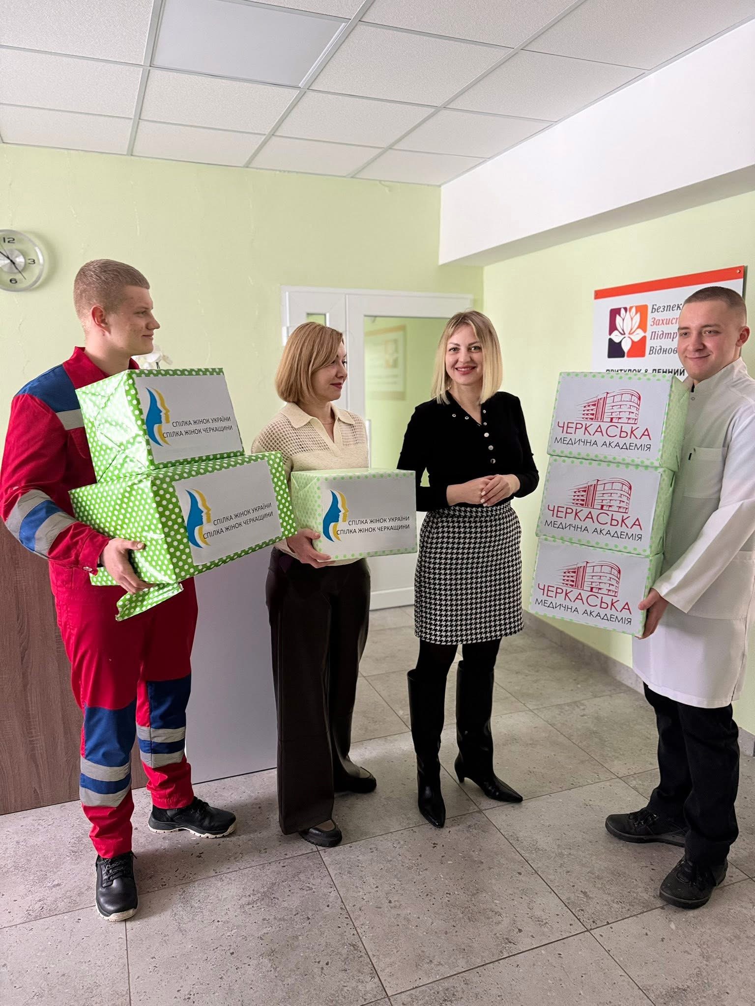 12 лютого представники студентської ради Черкаської медичної Віталій Синільник та Максим Ситник разом з проректором з науково-педагогічної роботи та післядипломної освіти Любов Білик та проректором з гуманітарних питань та зв’язків з громадськістю Анжелою Демченко від імені студентства, Спілки жінок України та Спілки жінок Черкащини передали теплі речі для маленьких черкащан, родини яких звертаються за допомогою до Черкаського центру соціальних служб. Гуманітарну допомогу надали небайдужі мешканці Фінляндії.