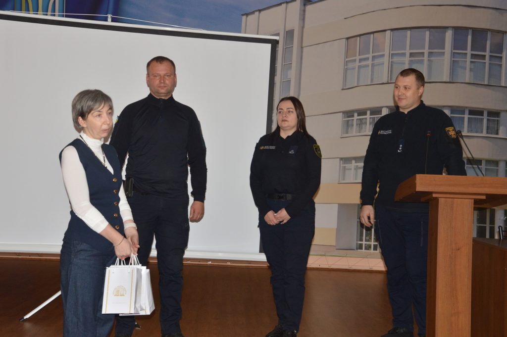 Увага та обізнаність – запорука безпеки! Цьому вчили учасників освітнього процесу Черкаської медичної академії фахівці ГУ ДСНС України у Черкаській області. 25 листопада вони провели заняття про вибухонебезпечні предмети, розповіли про мінну небезпеку, продемонстрували макети вибухонебезпечних предметів і роз’яснили алгоритм дій при їх виявленні та наголосили на головних правилах: «Не підходь, не чіпай, телефонуй рятувальникам!». Ректор Інна Губенко подякувала гостям за важливий внесок у безпеку освітнього середовища.