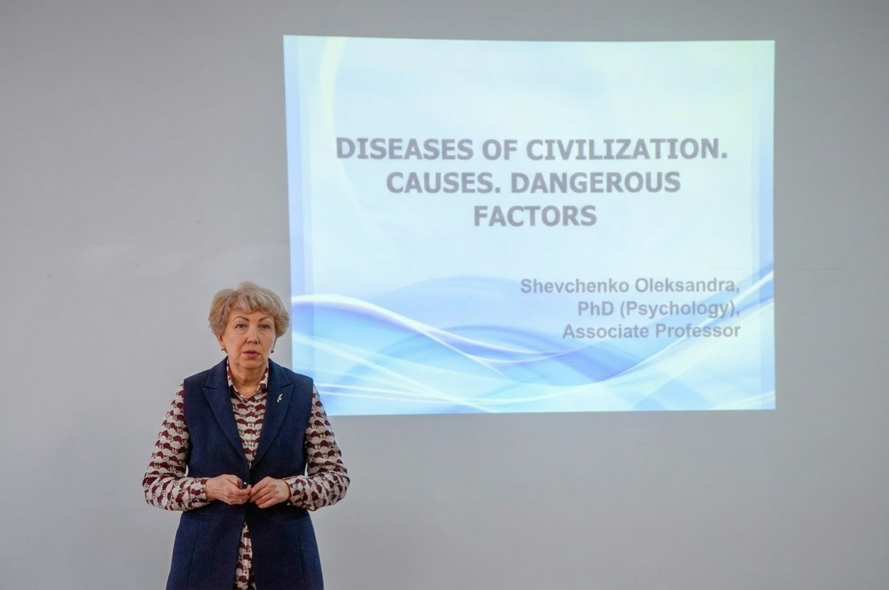 В академії відбулася зустріч майбутніх фізичних терапевтів і лікарів з доцентом кафедри терапевтичних та фахових медичних дисциплін, кандидатом психологічних наук, доцентом Олександрою Теодорівною Шевченко, присвячена вибору вибіркової дисципліни «Хвороби цивілізації».