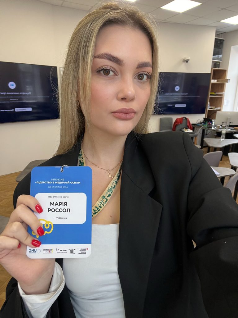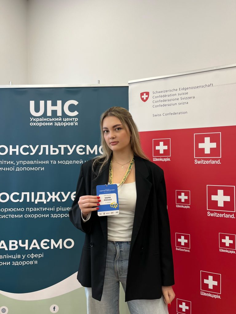 Студентка групи ЛС41А Россол Марії (освітня програма «Лікар») брала участь в маштабній події, а саме в україно-швейцарському проєкті, що відбувся 8–10 квітня 2026 року за підтримки Український центр охорони здоров’я та Swiss Confederation.